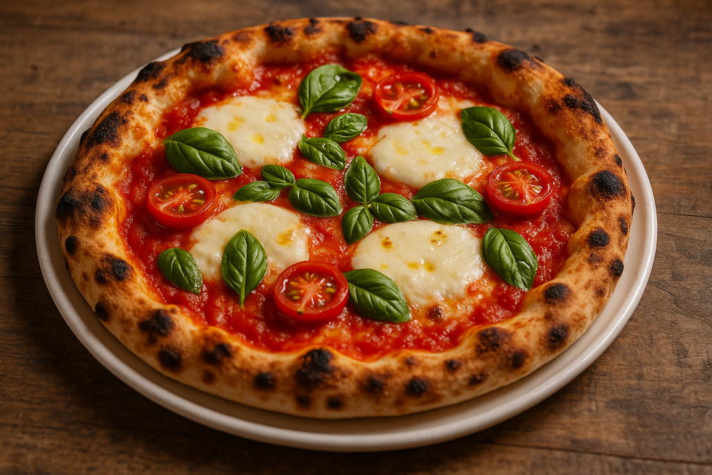Sauce tomate, mozzarella, aubergines grillées, copeaux de parmesan